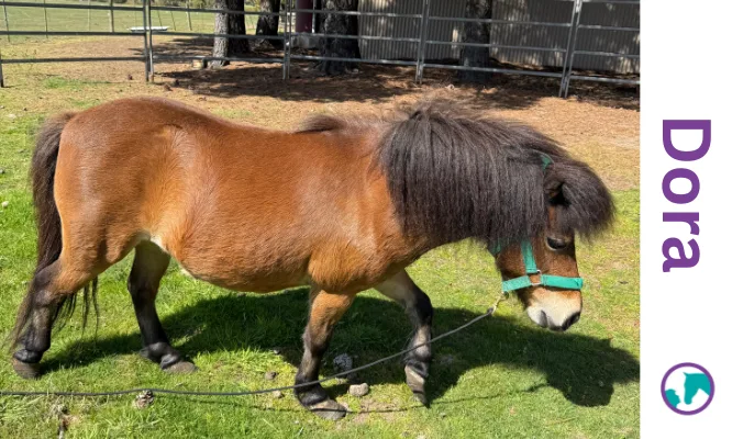 Dora is a sweet 9hh Bay Mini/Shetland mare who came into the care of Project Hope Horse Welfare after being unmanaged for some time.